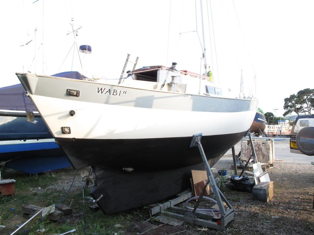 In the winter just before i retired i kept the Frances on a winter mooring in the Hamoaze so that i could continue sailing right up until i left, that way both me and the boat would be ready for longer passages right away. Big surprise then when the moorings manager had noticed that WABI” was low in the water, had been alongside and that there was water up to the bunks. Lucky for me to have such an attentive and conscientious boatman looking out for me ( i was on duty) but that he had instantly put a pump on board and then towed the boat into his mini-marina. Straight after my shift i went down there to find that shw was still flooding slowly so we took her straight around to the Huggins yard where they immediately lifted her out.