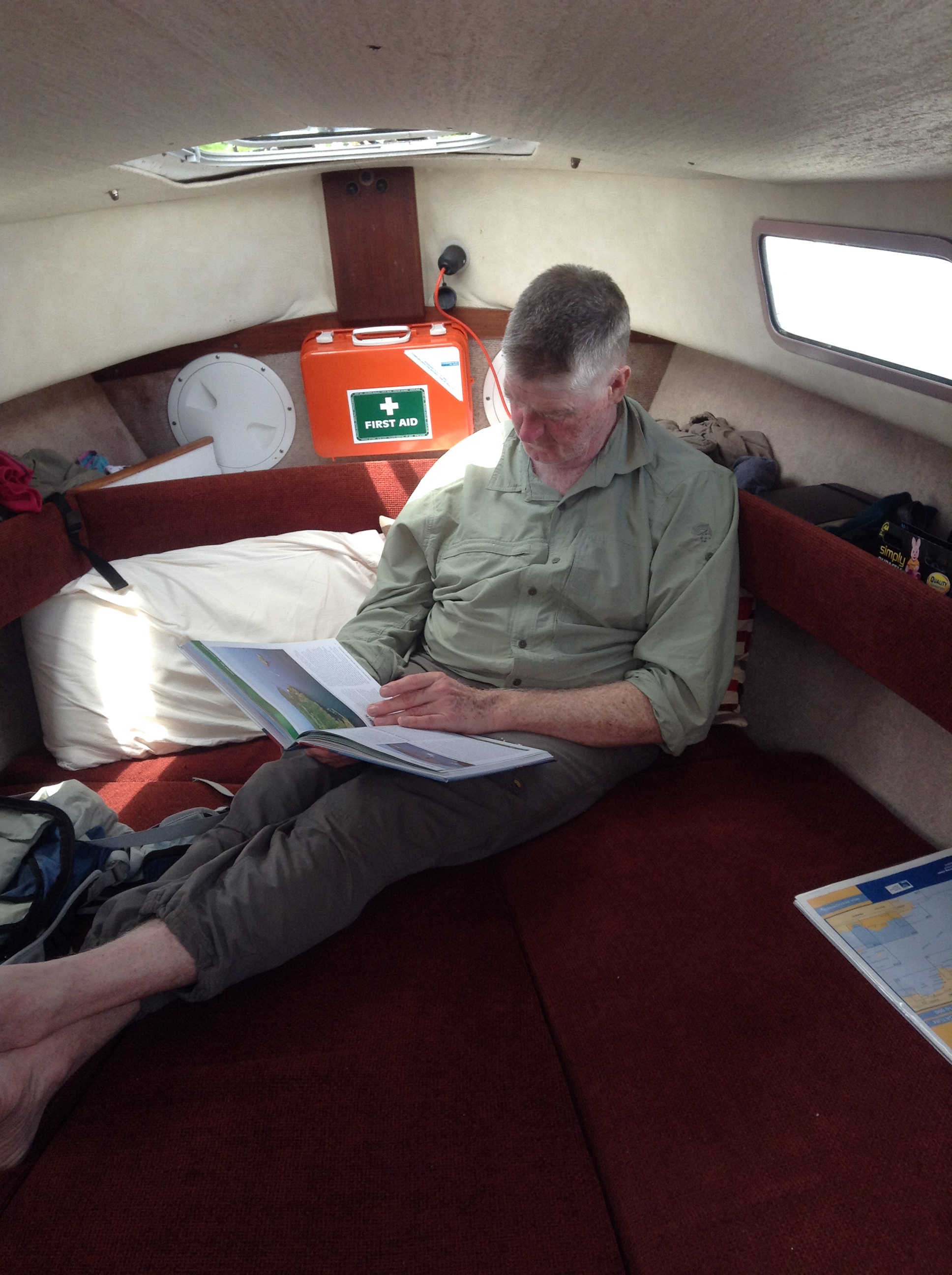 One thing that i really want to do is to tidy up the cabin bulkhead so that i can rest my back against it while sitting with my legs up on the cockpit seat…nice way to relax with a book and a brew at anchor. The current set-up of course has the compass and instruments exactly where my back wants to go (shades of the FFS 23 here) so that is out and is going into a demountable half-board to sit in the companionway. I will also mount a bowl compass where i can actually see it currently where the halyard bag is, thinking about some cockpit bags to tidy things up a bit and even maybe a longer tiller to allow me to sit forward of where i have to at the moment….in which position i have to sit uncomfortably with my back against the pushpit post ! (FFS).