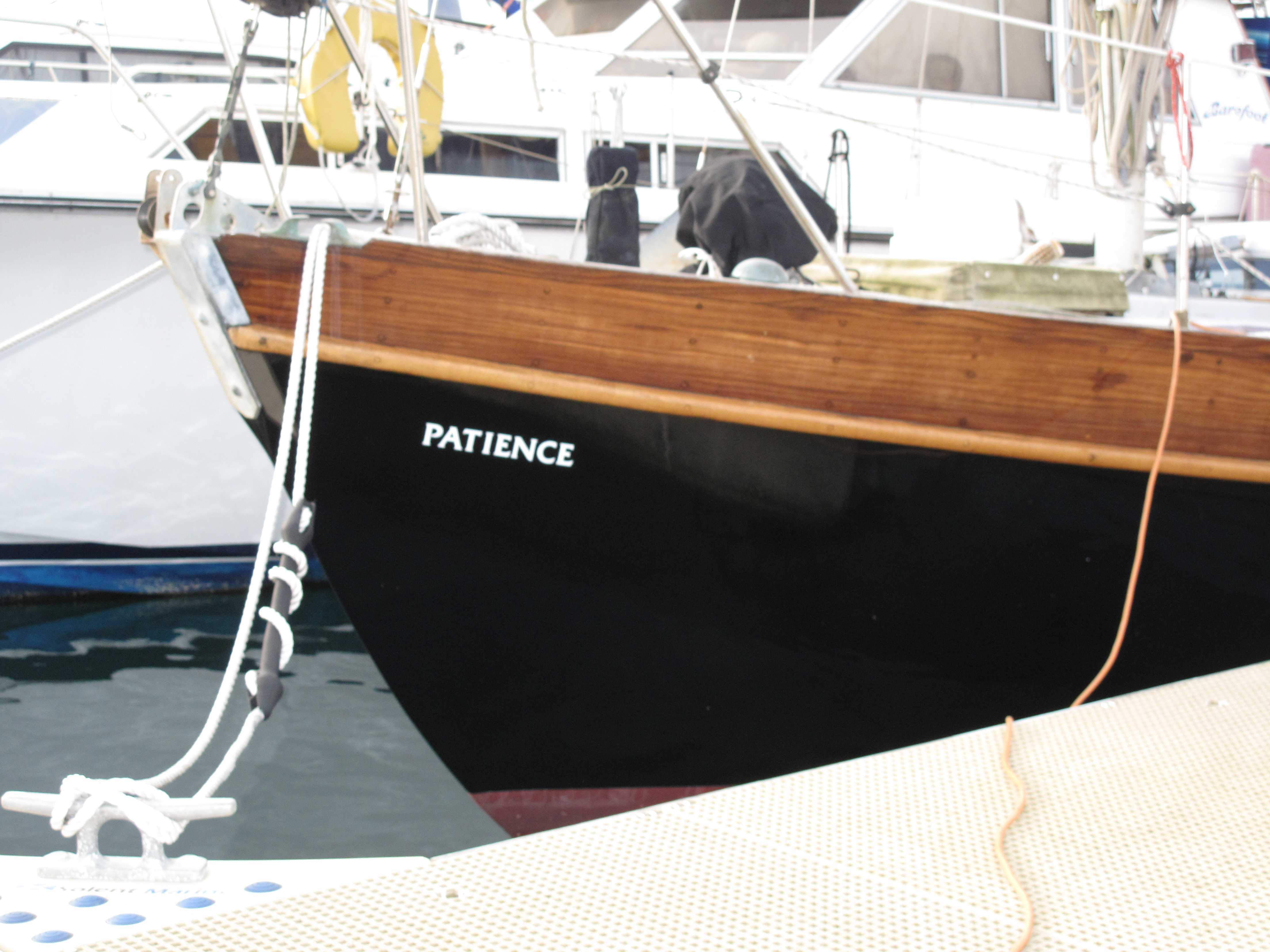 Better perhaps to be at least a little honest and confess to the many vices i have enjoyed as a sailor and here is a thought : rather than have a rather pretentiously named classic lets have the exact opposite and maybe a re-visit of my FFS 17 and a bit design : you know, the consciously worst boat possible with every bad design feature going . I guess we should re-name the class the ‘Vice 18’ so we could then name the lead boat as ‘Dishonesty’, my one of course would be called ‘Sloth’ one for a mate of mine could be ‘Lust’ and so forth. If you are now wondering whether i have been adding some strange chemicals to my coffee this morning fear not, i am fascinated by boat names : both the sweet/cute and the weird/pretentious and of course ‘Patience’ seen above piqued my interest. The name of my boat is actually a Zen-like pun, a few days we sailed past ‘Gladys’ and ‘Esmeralda’ which made me grin somewhat. Going back a bit i don’t know whether visitors here remember this but there was a trend to make up a boats name from the names of the owners daughters : ‘Taramber’ immediately comes to mind as i sailed on her once and that i guess was Tara and Amber. A few of these worked quite well and the name did at least have some charm and phonetic sense : one that i saw and asked the owner about didn’t work at all. I can’t even remember the actual name as it wasn’t even pronounceable at least in English : the story goes that her German owner had taken the names of his 3 daughters and thrown a few letters of each together : the problem being that he was a great Wagnerian fan and had named his daughters for the heroines in Wagners opera’s. I mean what a terrible thing to do anyway but just imagine trying to make a boat name out of them afterwards : German humour at its finest i guess.