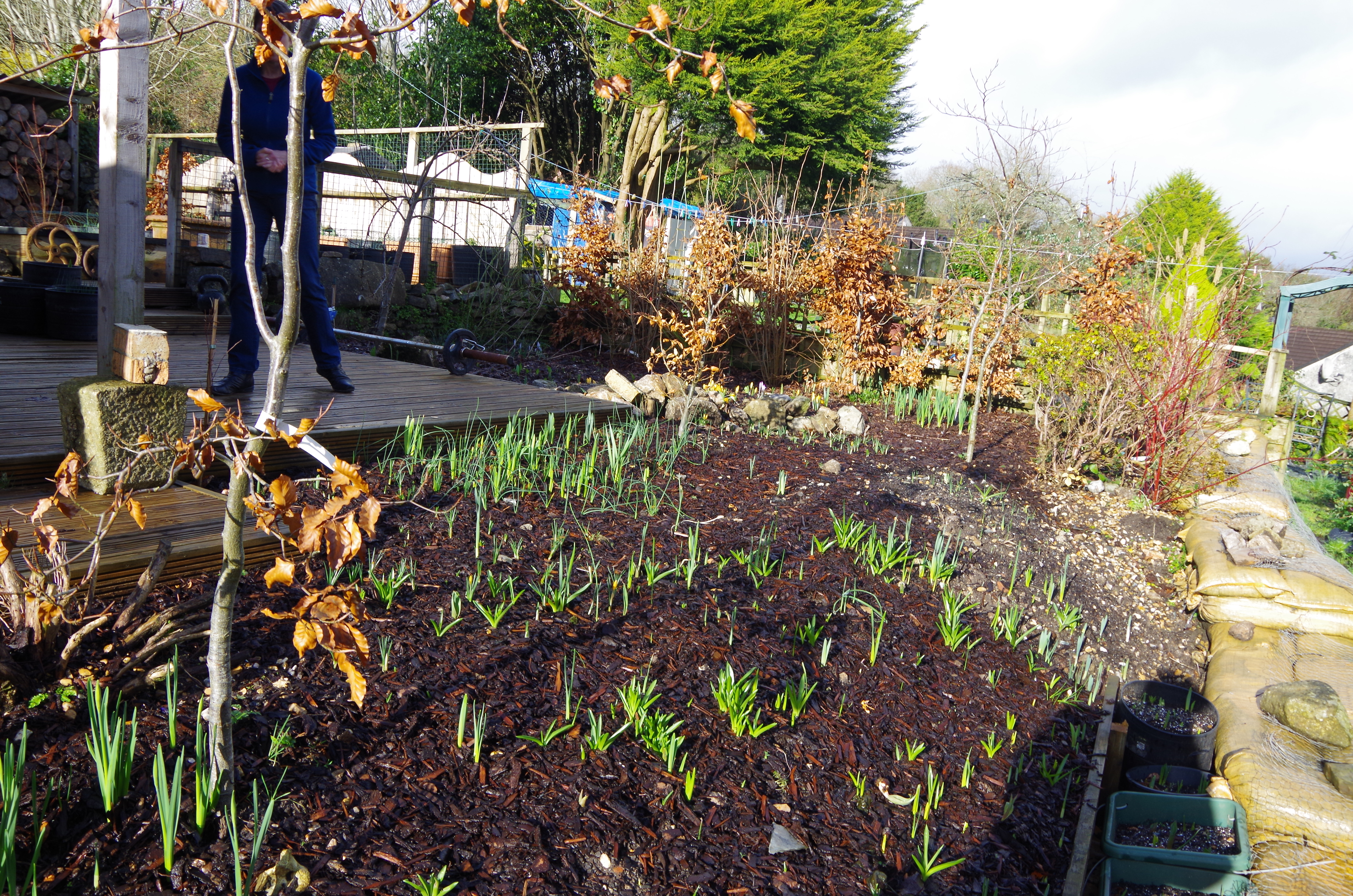 One month. Its been almost universally windy and wet here so i have had little chance, and no desire, to either go down and see the boat or even peel back the cover of the project boat in the drive. What has happened here is that the first bulbs have just flowered, so far only a few of a previous years planting of crocus and a couple of daffodils in the woodland section in the front garden. Loads of bulbs are poking through now so its going to be a blaze of orange, yellow and white here in a couple of weeks. After that i should get a longer period of different flowers in each part of the garden although for some reason i never seem to get much effective colour after about June. This year though i should get the crocuses first, then daffodils and lots of narcissi, then a break before a huge burst of tulips and then the alliums should come through….some of those are the giant ones which i am looking forward to seeing this year.