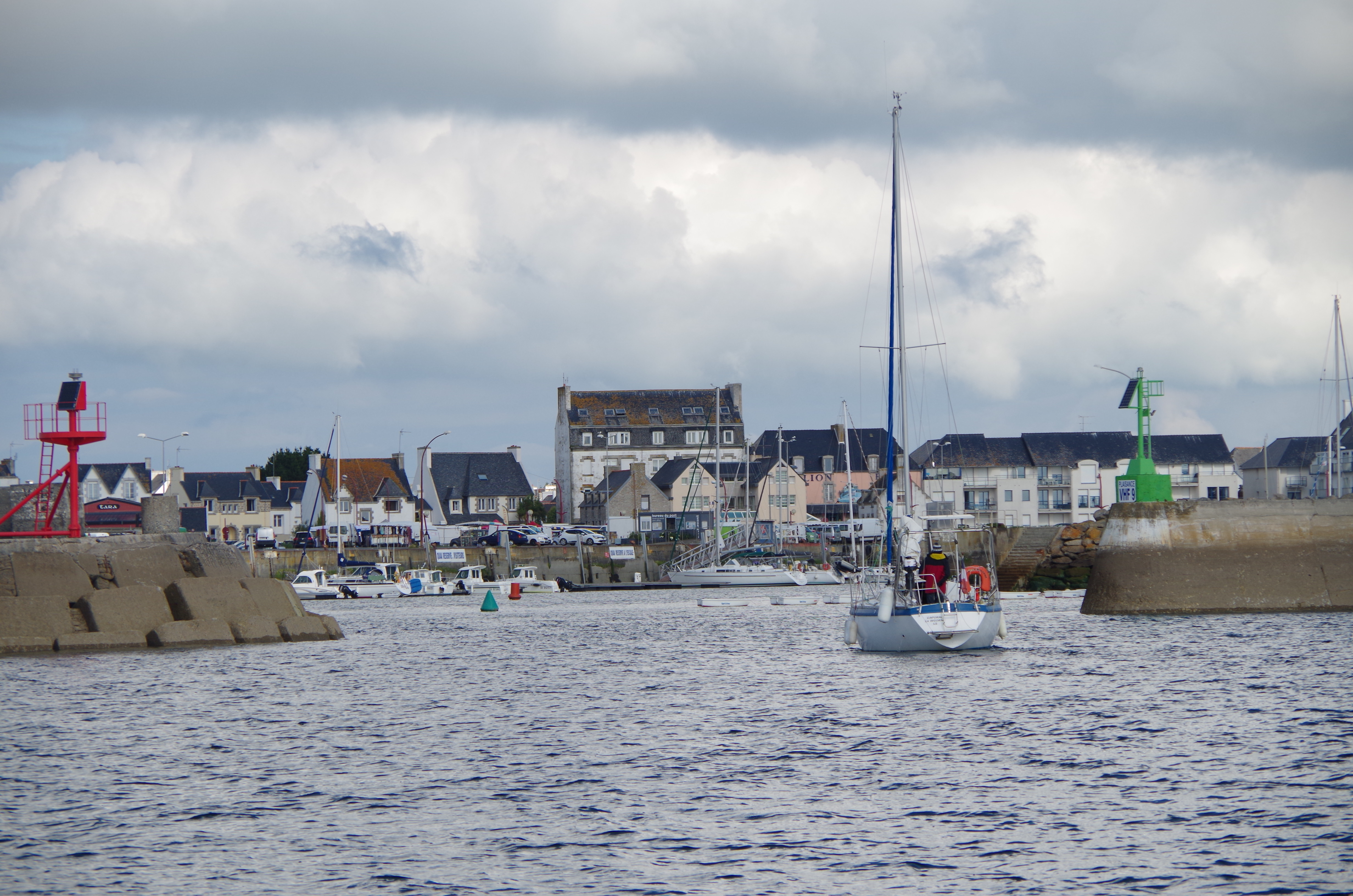 There were 2 places that I really wanted to take a look at in the bay, the small harbour itself and a what looks like a small river inlet right in the north east of the bay. At anchor I didn’t have either the height or the angle to see whether it was possible to get into the river/inlet because there was a reef in between it and me. After a very nice night at anchor, when the wind died down and the rain stopped I up-anchored on the flood and motored the short distance to the tiny harbour entrance and had a look around inside. There is a small working fishing quay on one side, a closely packed set of small local fishing boats in another part and then a few finger pontoons for visiting yachts. I didn’t need to go alongside as I planned to sail back to Benodet the same day so I had a quick look at boats in the inner harbour and then scooted out. Although I don’t particularly like being alongside marinas I would quite happily come in here if I was passing and the anchorage was uncomfortable.