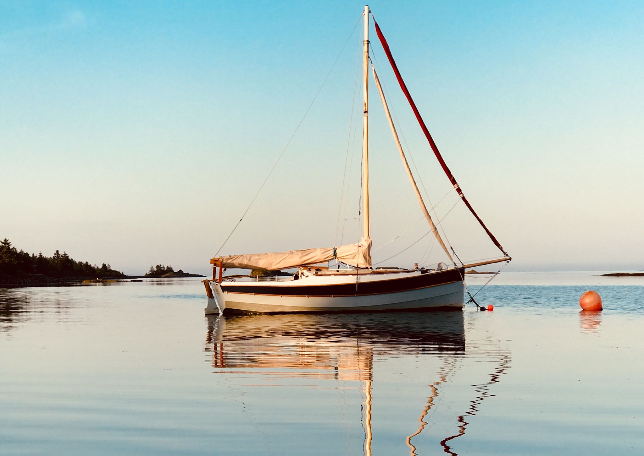Irens/Burnett ‘Roxanne‘ hull with modified rig in Dartmouth.