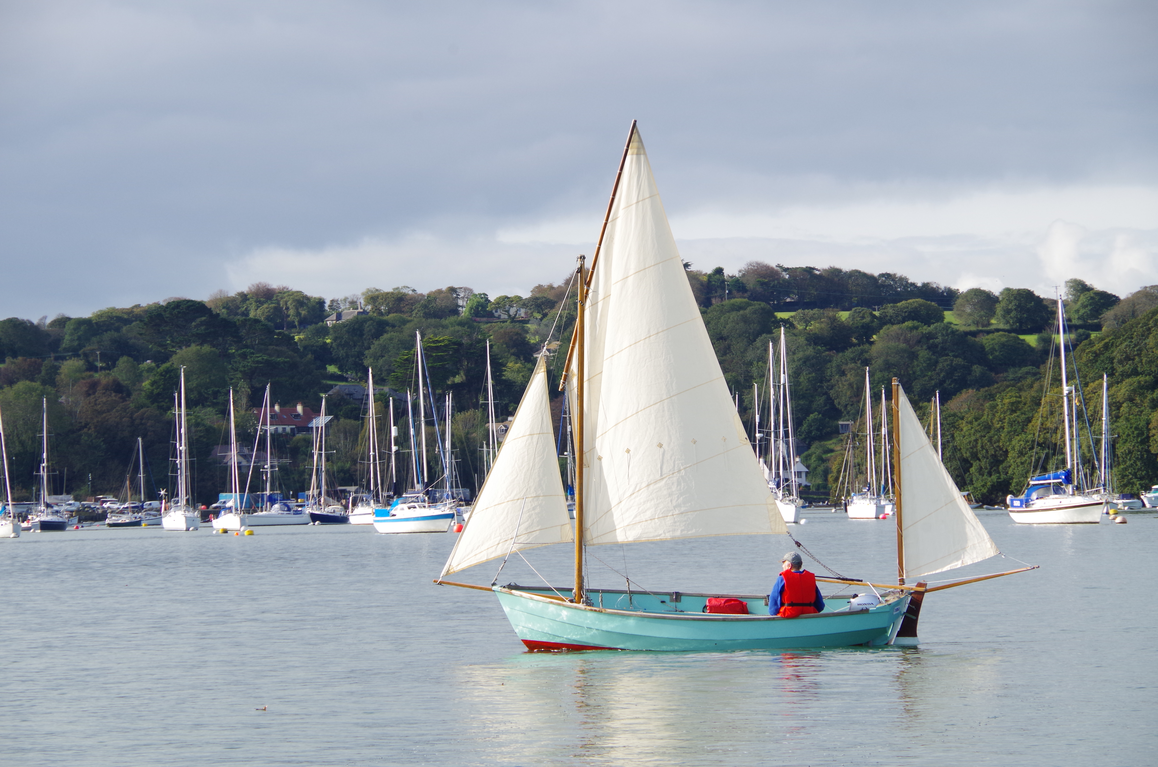 October 2019…..in one of the rare clear and quiet days i had during my autumn cruise to the west country i was ghosting slowly down Falmouth roads, somewhere off Mylor when i noticed that a little light blue lug rigged yawl was also out just enjoying the day. Like me it’s skipper was sitting down to leeward to heel his boat enough to let his sails take some shape and like me he just about had steerage and forward movement most of the time. I don’t know which model it was but i recognised the little blue boat as being one of the Drascombe’s and i happen to want one for my next sailing project.