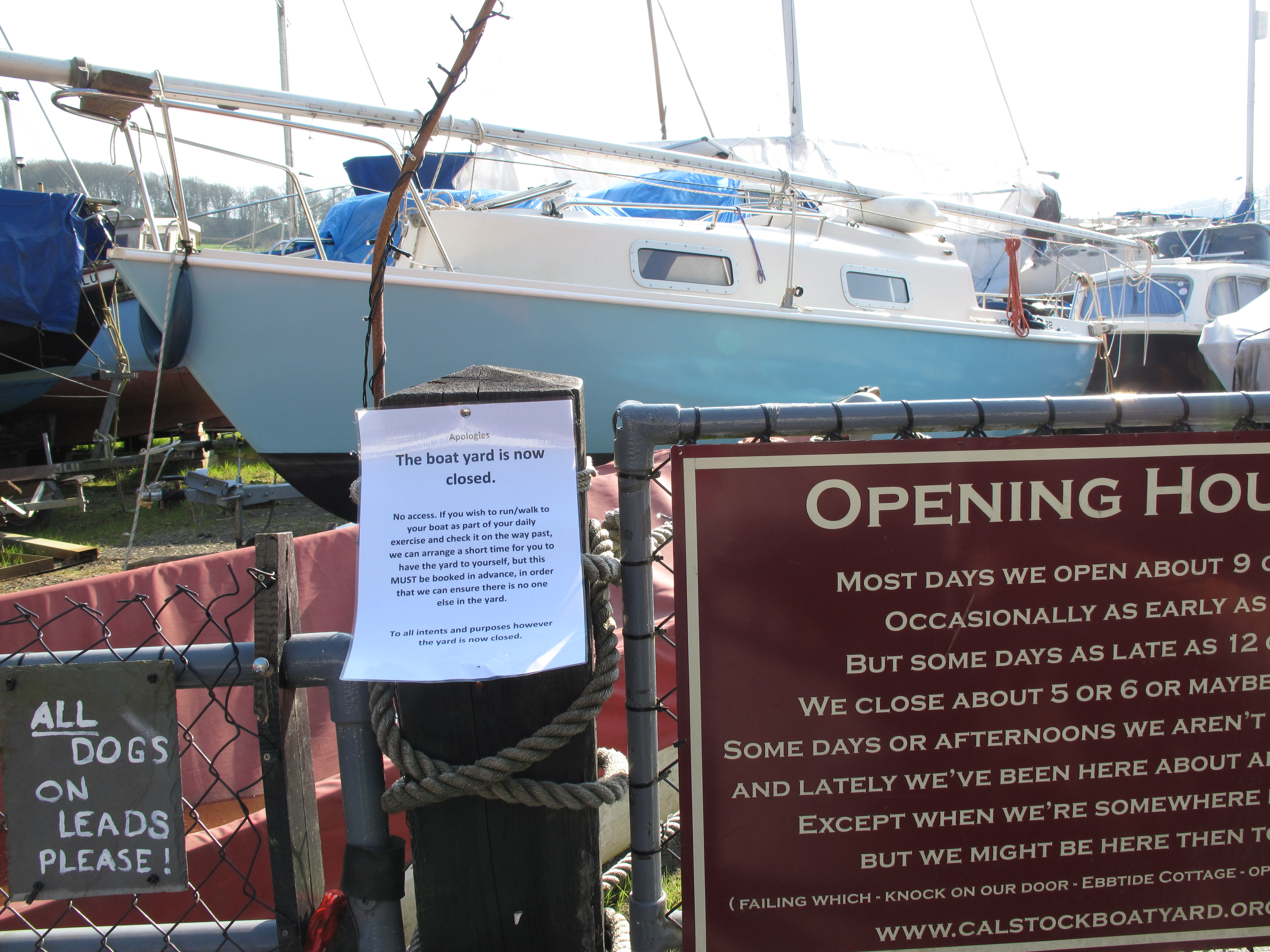 Blog time : It’s early April 2020 and right now i should be at sea , starting my long awaited voyage around the UK in my little centerboard Liberty. WABI”’ should have been launched 2 weeks ago but like many UK boaters i got caught out by the complete shut down of boatyards…..my boat would have been the first one back in the water after the boss’s own boat and i missed my chance by just 2 days. Instead, that’s my little boat behind the locked gate although the boatyard boss is being very helpful about me going aboard to do essential jobs as i can walk there and so make it part of my ‘once a day’ exercise !