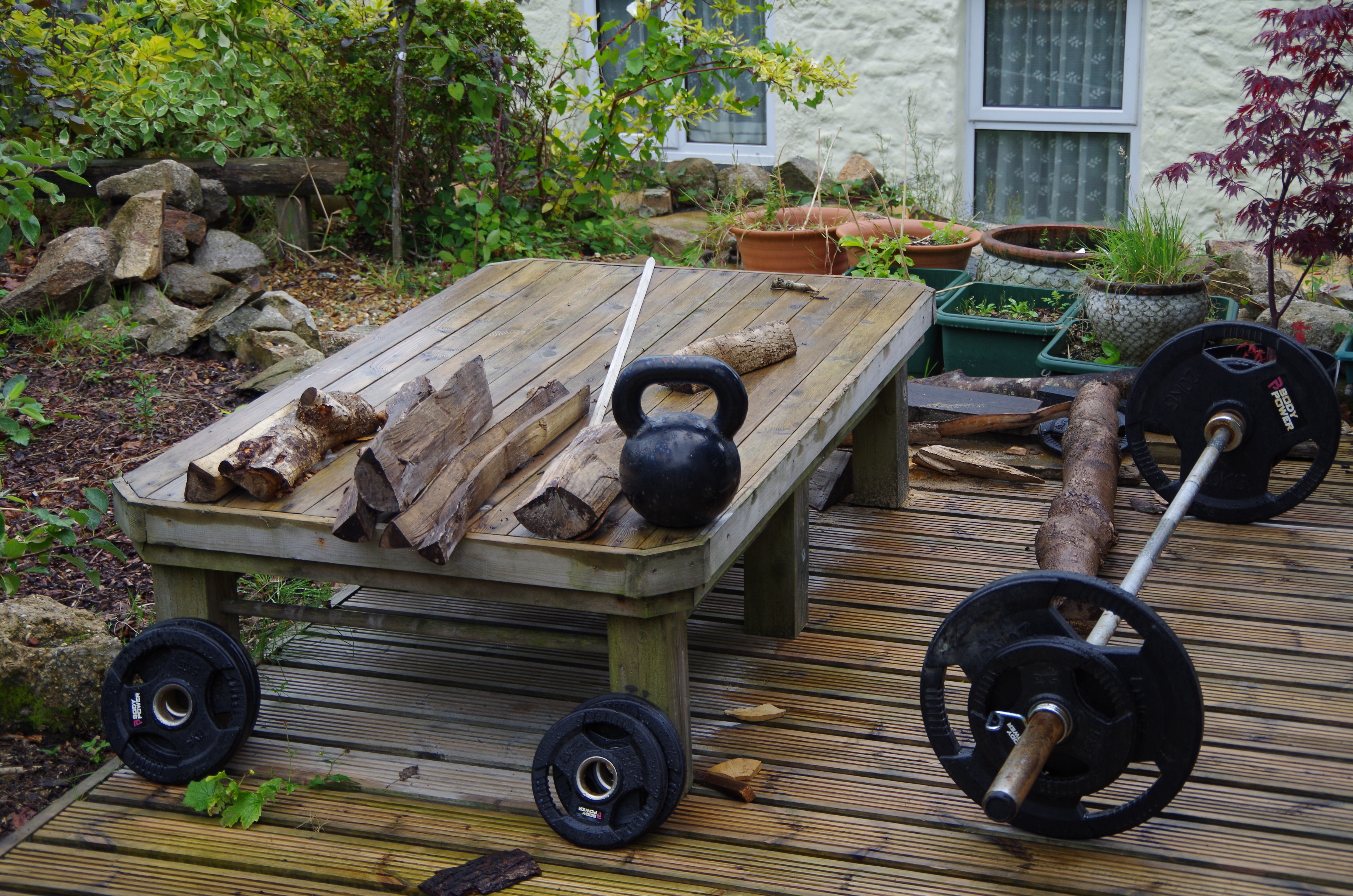 In my new exercise regime all i did at first was to deliberately increase my walking distance, painful and ‘heavy’ at first and then to add body-weight exercises at home : at first in the form of simple press-ups , 10 a day then 20, 40 and so on until i was doing 100 a day. If you are wondering how that can influence muscle mass in my legs then it is by the route of compound exercises stimulating more muscle groups than just in arms and shoulders in the case of press-ups. Think about a press-up and you will see how much it also affects core/abdominal strength and tension through leg muscles to maintain position. As soon as i could though i added ‘air’ squats and then started working with a bare olympic bar and an improvised squat rack at home : mainly in the form of rear squats and also high steps to a step bench.