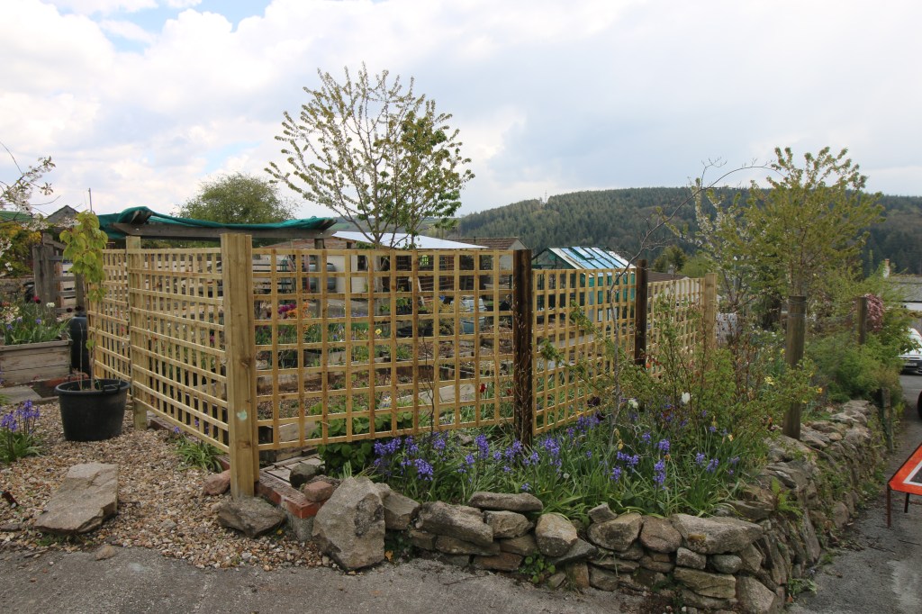 One discovery i made while doing the trellis work that boxes in one corner and half of the long side of the garden is just how much drop there is – we live on a steep hill on the side of a valley so to make the new work look right each panel has to drop by one square (100mm) every 6 foot length. Anyway, many of the bearers that support the wooden slats must be slowly rotting out and there are large voids under much of it…..i put my foot straight through a couple of slats this week so iv’e been attending to that. Really i should have ripped the whole structure out years ago and filled the voids with rubble…….hey ho !