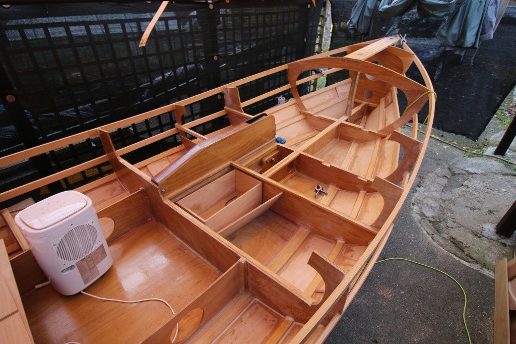 So…..this is the first post in my autumn and winter series of small project posts on the Pathfinder build – as of this week i have stopped working on the main build full time and instead i’m working in the garden when it’s not too wet, working inside when it is and only working on the boat for short periods when it’s dry. Just as a quick recap – my main goal was to finish the hull this year and ideally by the onset of the wet and windy autumnal weather ; well, i got the hull fully planked but i haven’t covered the outside with glassfibre and epoxy because i haven’t turned the boat over and i haven’t done that because the boat isn’t ready to turn over yet. My main job now is to prepare the rest of the inside of the hull for epoxy coating , those parts that i haven’t done so far and that’s mainly the top 2 pairs of stringers and the top 2 pairs of planks but there are also all of the various fillets and joints to smooth and cut back a bit……lots and lots of detail. That job , as any boatbuilder knows, is just hours and hours spent with various sanders and lots of different grades of sandpaper and the many different sanding blocks that iv’e made…..2 for example that match the radius of the epoxy fillets. So anyway, i do a couple of hours sanding whenever iv’e got nothing better to do while i also think about some of the nicer small jobs.