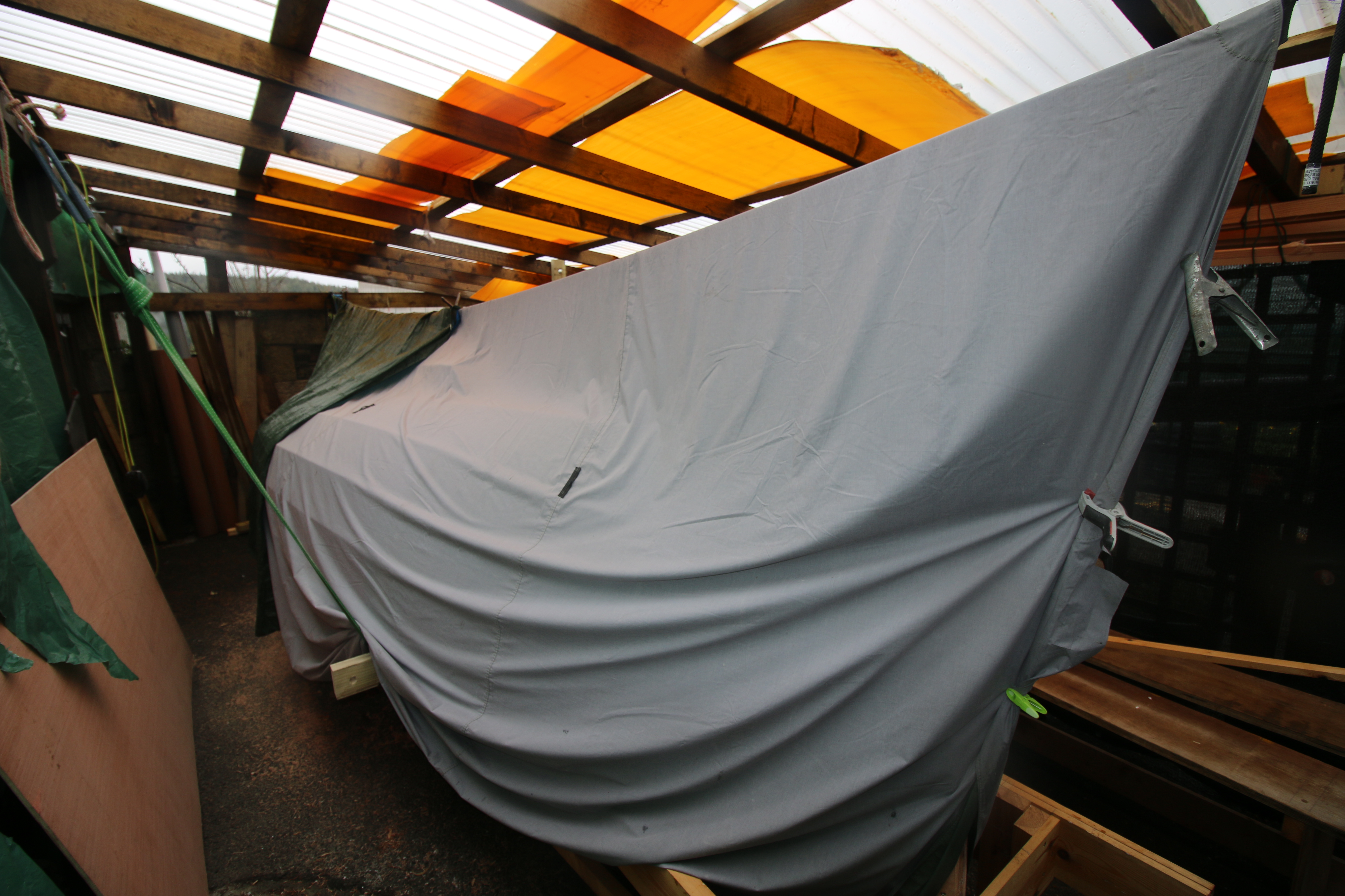 Anyway, the end result of that was not much actual work achieved on the project but what it did give us was a much larger than usual electricity bill – my partner manages our utility bills with standing orders and she found that we were about £100 in deficit just because of 5 or 6 weeks extra heating. Then, it just got too cold to work so i stopped all boat work and got on with a long list of jobs outside and i left the project alone until the air temperature got up to 10 c again….at that air temperature it’s often warmer under the shelter and it’s just about ok to cure epoxy with fast hardener but it doesn’t work as well with the slow hardener that i was all i had left.