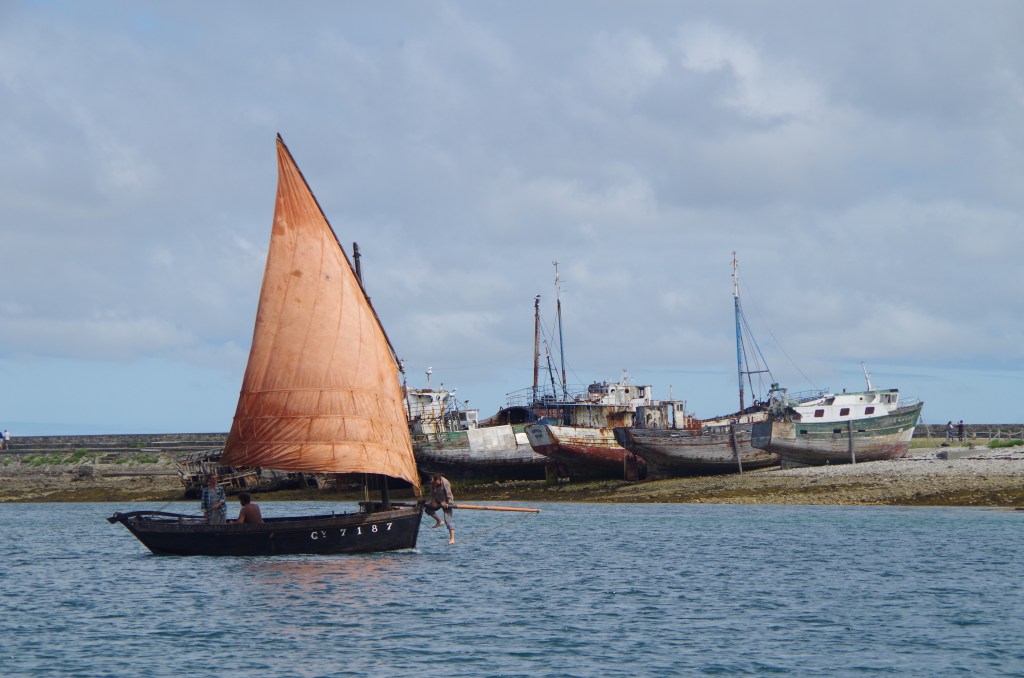I’m really drawn to either of the ‘working’ rigs and by working rigs i’m thinking of the Dutch working craft like Botters and Tjalk’s with their high aspect gaff rigs, often with a curved gaff and a boomless mainsail. I had the version drawn by Hanneke Boon on my little Wharram catamaran – that sail actually wraps around the mast as a soft wingsail , was boomless and seemed to work well. The second working boat i have in mind is the classic west country and Breton working rig – the standing Lug with a freestanding mast far forward in the boat. This part of the country is well known for working Luggers and just over the channel I saw similar sized big dayboats with standing Lug rigs…..one feature of those is that the rig is quite tall and seemed to be able to catch the wind in a sheltered estuary.