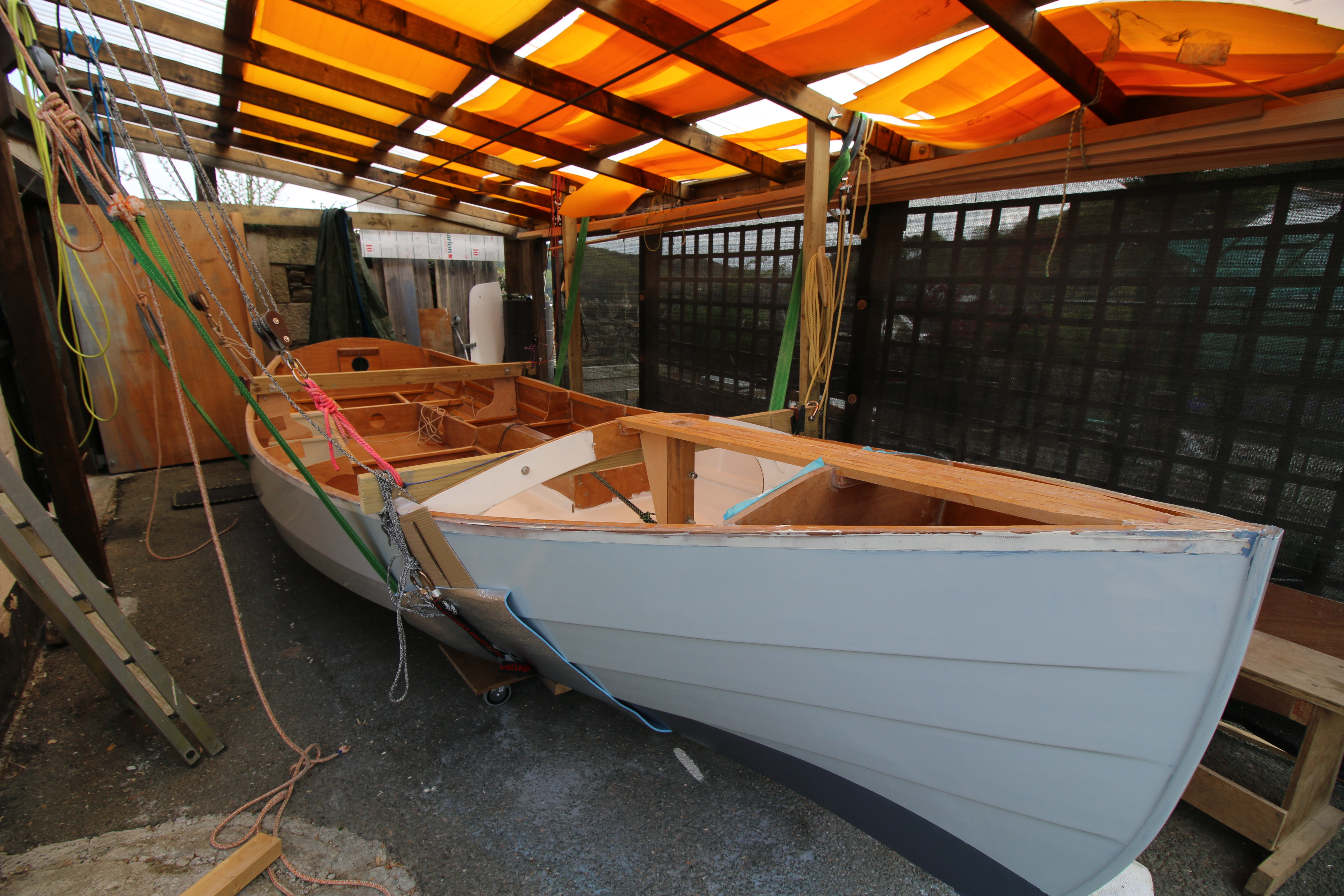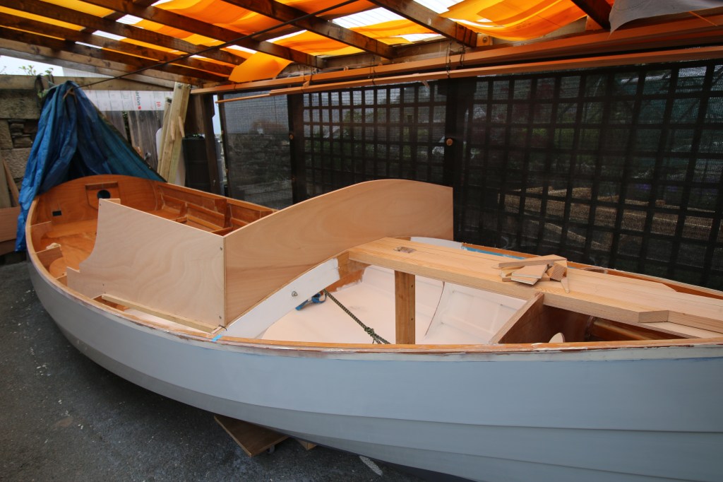 Welcome to a new posting and blog format for early summer – Iv’e decided to change my post format and timing slightly because i’m working full time on the project, got lots going on and I was falling further and further behind in showing what’s being done. As I write I’m in week 10 of the project this year and it seems to have gone in a flash but there again Iv’e turned the hull back over after finishing the exterior paintwork for this stage, taken out the original kingplank and built a new one, experimented lots with the rig options, made patterns for and then dry-built the ‘shed’ and done more work on the steering gear : hell, if i posted a few pictures that would be it and you could go back to whatever else you were doing.