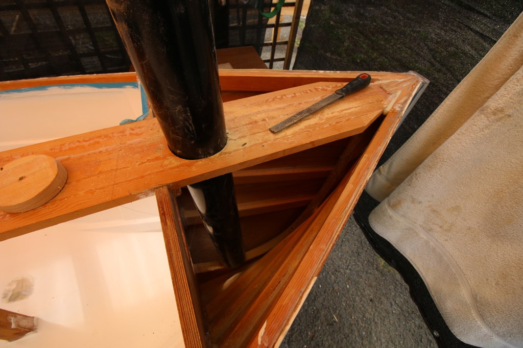 My new work approach this year is partially just to allocate more time to jobs that appear small but which are crucially important – thus this time around I basically gave myself an entire day to first mess around with and then remove the old kingplank : the ‘mess around with time’ was because I also used the work session to work out how the mast for a Lugger would fit in the boat.