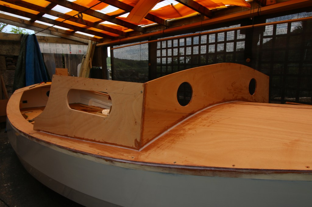 I made a bit of a mistake with the side window attachment points so my first job next week is to cut those out with my power multi-tool and make some new ones – the new version will be plywood plates that are bonded onto the inside of the cuddy sides and which will have a smaller cut out leaving an internal flange to take the acrylic windows.