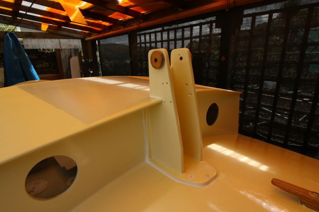 A lot of that is due to my tabernacle and mast position and partially that I really want the best sailing performance I can get. In practical terms what that means is that I finished and fitted the boomkin but at the end of this week I made some blanking plates for the mizzen thru-hole and boomkin hole and I also closed the back of the boat.