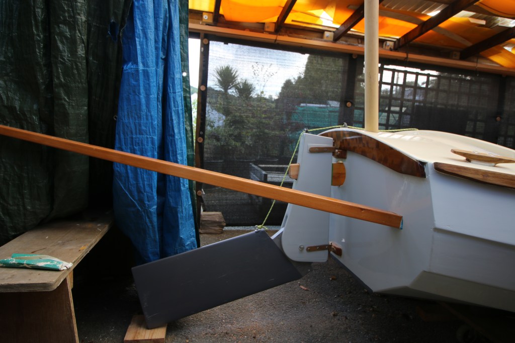 While I was sorting out plywood scraps I set to and made the aft mast support for transport and storage – that means everything to do with the boat is now under covers.
