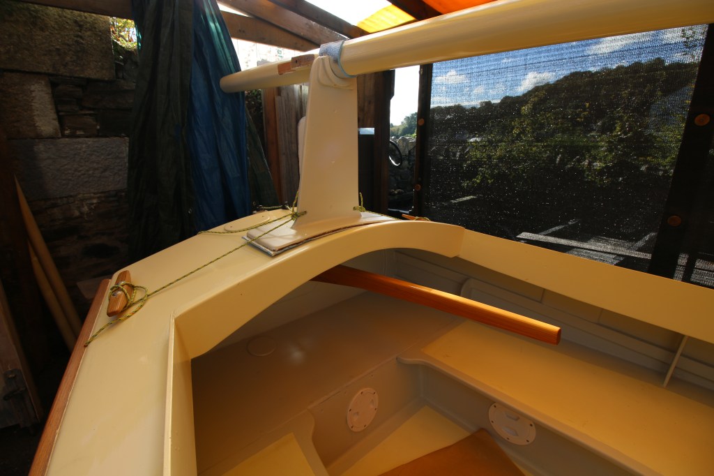 I’ll be interested to hear the detail of your thoughts on a sloop rig. The tabernacle will definitely have some benefits. For me there are some many positive benefits for the gaff yawl rig that ‘Anemone’ has, that I couldn’t imagine sailing her without it. Congratulations on the build. She looks great. Have you checked forward visibility for the helmsman? Thierry added a foot plate either side of the coachhouse on Anemone to improve the helmsman’s view after his first sail. I find that the coach house limits how far forward you can sit, so in order to be balanced fore & aft when single handed I am up next to the bulkhead. Two up it can be easy to drag the transom, so moving your water tanks forward to compensate could be a benefit in that situation. I bet you’re itching to sail her. All the best. Gavin