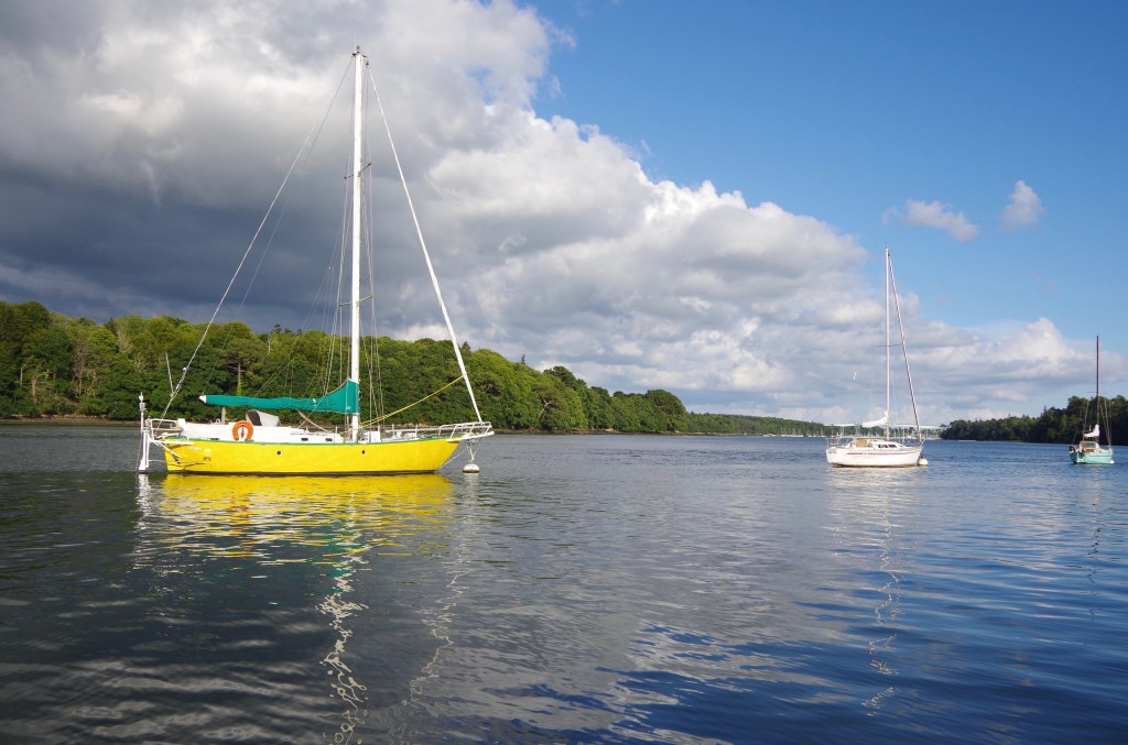 The yellow yacht is ‘SABI’ …….I used to think of her as ‘WABI’s big sister in the Odet Fleuve.