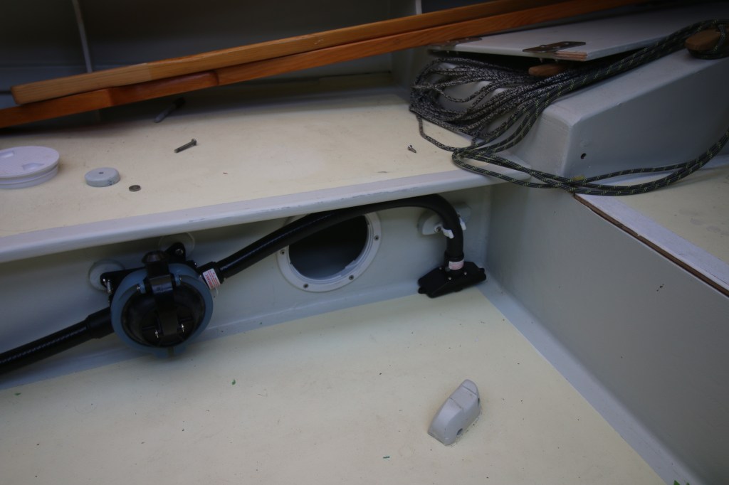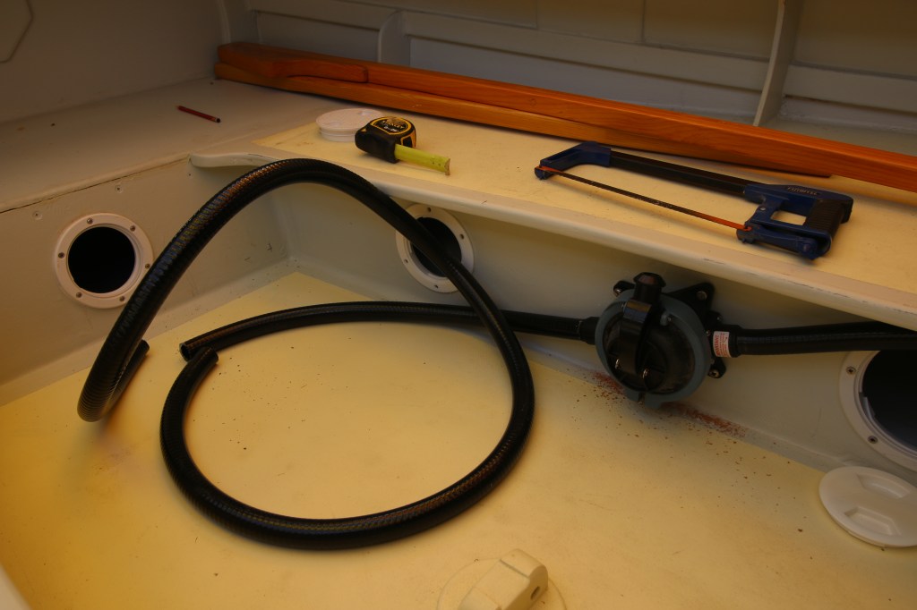 As I said earlier, the total plan for putting the sea back where it belongs is one manual bilge pump either side of the cockpit plus an electric bilge pump to starboard which will run while i’m recovering dirty anchors into the cockpit along with buckets of seawater. I’m just going to have to find an easier way of running the hoses aft.
