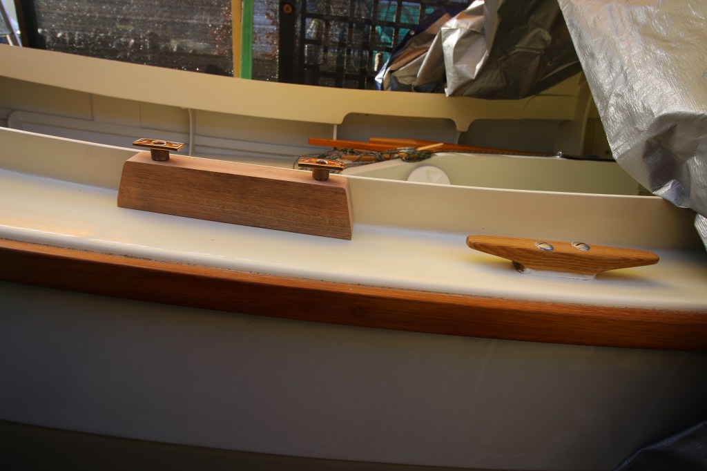 Practical jobs this week then….spent a couple of hours sorting and tidying in the workshop while occasionally filming the name job being done. Then ; iv’e made a sculling notch to be transom mounted and got 2 pairs of smart (read expensive) Bronze oar sockets to mount in the oar risers. My plan now is to have a long riser block each side of the cockpit (as per photos) which will allow for a forward facing standing rowing position and one sat on the center compartment lid.