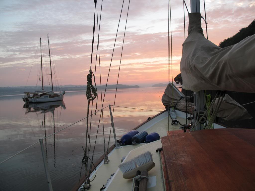 The tide had just turned at the yard and was now ebbing down the Hamoaze – for those that don’t know it that’s the section of river that runs past the Royal Navy dockyard at Devonport. I knew that in about 2 hours time the Frances would gently settle into the mud and I also knew that it would be a bit of a fight to get uptide and upwind to one of my favorite anchorages for a night out so instead of either drying out (or mudding out) or motoring hard up the tide I took in my lines and motored out of the short ‘timber pond’ channel behind HMS Raleigh and got my mainsail up as we were swept gently down towards the tidal narrows that would spit me out into Plymouth sound.