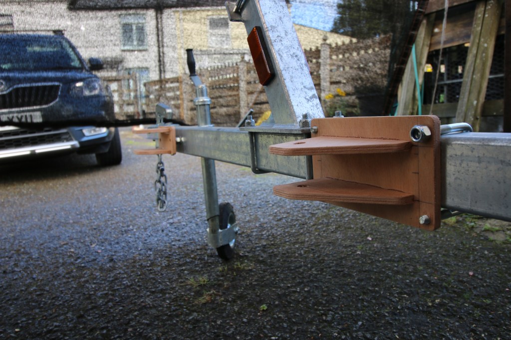 Blog time, late March 2023 : with any luck this will be the last time I have to talk about the trailer and it’s taken a lot longer and needed many more extra parts than I originally intended : added to that it seems that every time I have bought new parts it’s the new parts that give me a new set of problems. At the end of the day yesterday though I finished with the boat sitting square on the trailer’s deck, the risers and pads up and supporting the garboard plank each side and the whole boat tied down fore and aft. Technically that means that we could take the whole rig out on the road except that I haven’t finalized the insurance or got a spare tire yet. In terms of driving , the car is insured to tow the trailer but the car insurance doesn’t cover any accident or damage to the boat or the trailer so i’m doing those through the boat insurer….and sure as eggs are eggs i’m going to get my partner to read the small print because of what happened one time I insured a boat.