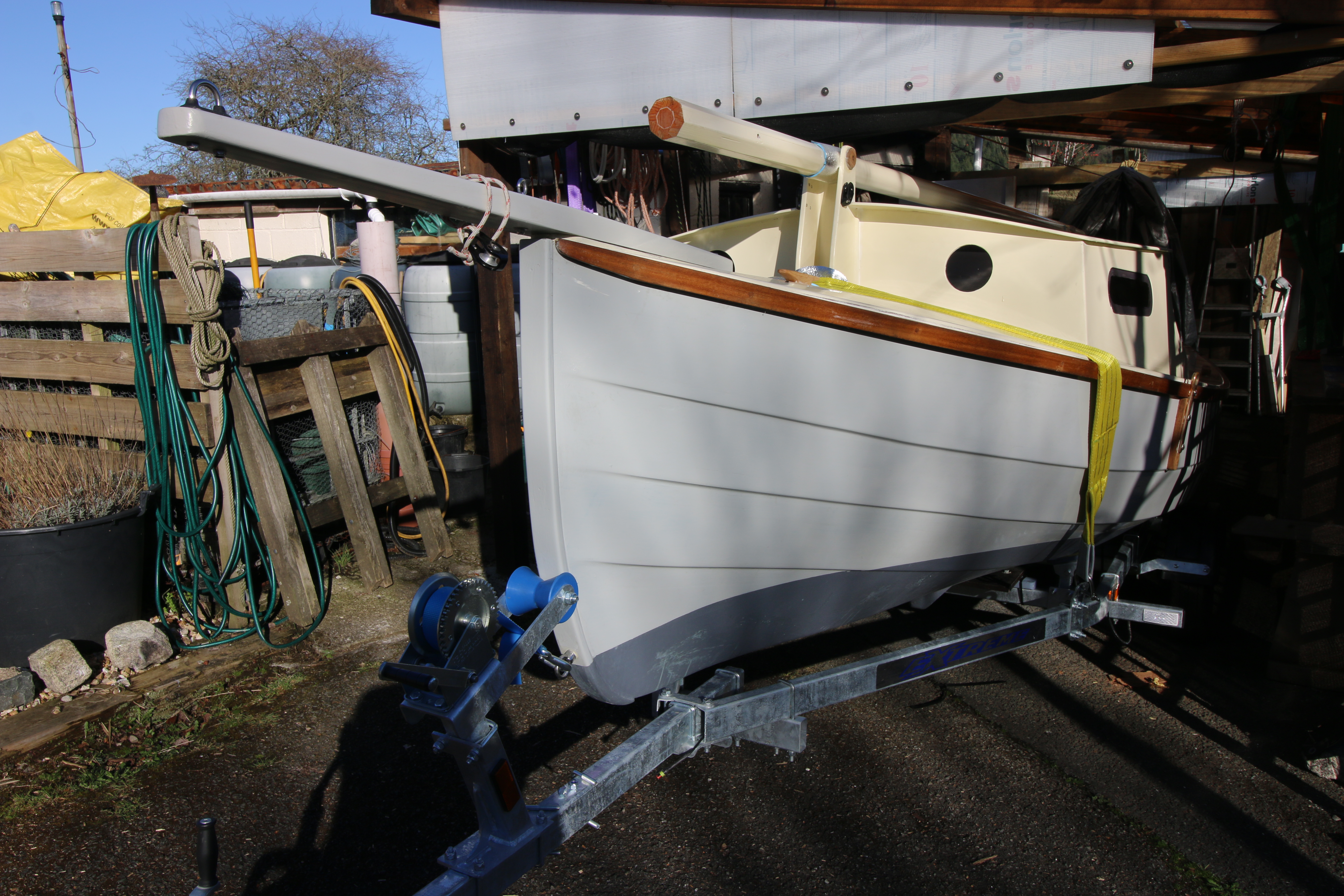 My last jobs, for now, will be to take all of the loose gear out of the boat, take the mast off because I now need to put it’s rigging on, do a final check and then go out on the road to see how it drives and basically get used to driving with the whole rig. For those who ask we are still some way away from launching and going sailing because first I have to add all of the standing rigging, put the mast up and then ‘measure the hole’ , have the sails made and then add all of the gubbins-y bits that make it all work. We may end up doing that partially on the water during a week of sea trials for which we are starting to work out where to take the boat and what we feel we need is an easily accessed slip where we can also park the car and trailer rather than having to bring the trailer home…..as and when we start WABI’s actual voyage then the trailer will be used to take the boat somewhere and then be taken straight home.