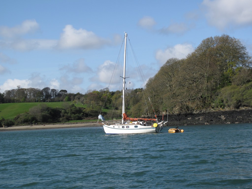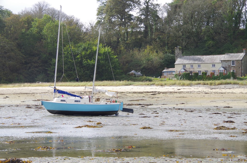 For now we’ll ignore the port and town of Falmouth and scoot on up the Carrick roads, past St Just in Roseland and past the rising ground on our right until we have to duck around the marked spit off Turnaware point and head upstream past the various moorings and pontoons towards the King Harry ferry. The river gets a lot narrower here but it’s still deep – deep enough that it’s normal to find a ship or ocean going tug moored there. The creek directly opposite the end of Turnaware point is Channals creek and a good anchorage as long as it’s not blowing from the south….personally I prefer anchoring in the mouth of the tiny Turnaware creek itself just off the shingle beach where boaters often camp.