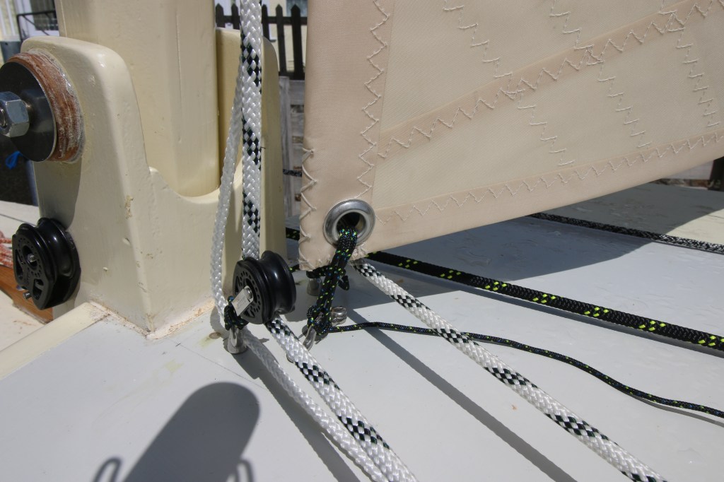 It didn’t help that I went into the day excessively tired and groggy from a few nights of poor sleep and with the expectation that the job was going to be a nice easy day with an end result of knowing where all of my sheet leads had to go and therefore where the sail handling gear has to go. Instead, I finished the day exhausted and dispirited and then I was somewhat lucky because the next day turned to strong winds and heavy rain so instead of feeling that I had to bash on with the problem I had the day off, we went off to get a bacon bap and a coffee and I got some distance to think about the problems that I had encountered.