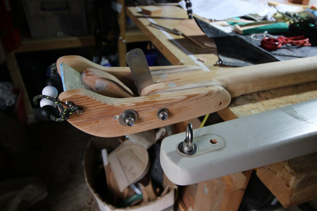 As I write it is late July 2023 and I feel that I am weeks, even months now, behind schedule – not only have I still not launched the boat for the first time but the whole summer is slipping past and it’s now three years since iv’e been out on the water. I don’t even want to say that the end is in sight because i’m still creating new lists of things to do before I can go sailing : right now for example i’m working the problem of being able to hoist and lower my sails without resorting to cable ties to hold things together and have still to work out the sheeting positions.