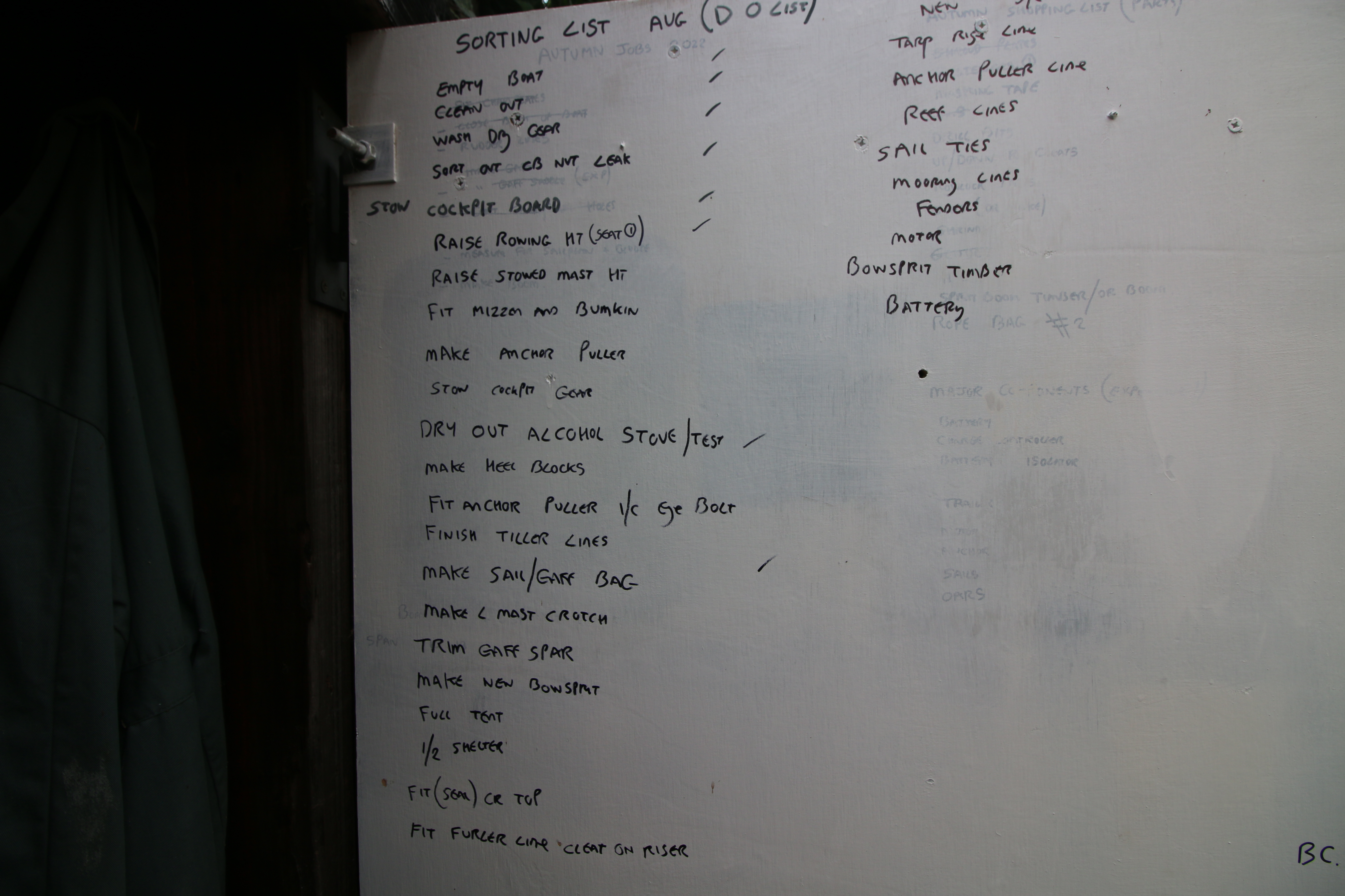 All the time now i’m planning what to do with each month’s micro budget. be it which new block and length of cordage will allow me to finish a small job. What I am mostly doing is planning my main spring project here and costing the various stages of that ; I am also starting to think about what I do next year as, for example, I move onto the actual sailing and filming side of the project – which needs a new camera set up and one new anchor. I’m even beginning to think my way into stages 2 and 3 completion which would be, at the least, a full electrical system buy and build and the aforementioned shelter.