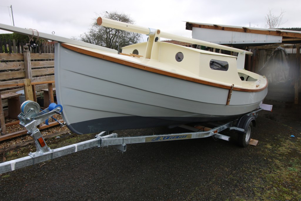 Year two ended with the hull having side and end decks and a non standard cuddy, the main event, in my mind is that my partner helped me with buying a trailer and it was a couple of days work lifting the boat onto it and slowly bringing it more into balance to make it tow well with enough weight over the drawbar, At some point I built the mast and then made an appalling measurement error in ordering the sails. Year two finished with me writing up a long list of jobs on the inside of the shed door and I was way too confident in believing I would be on the water and sailing by midsummer the next year.