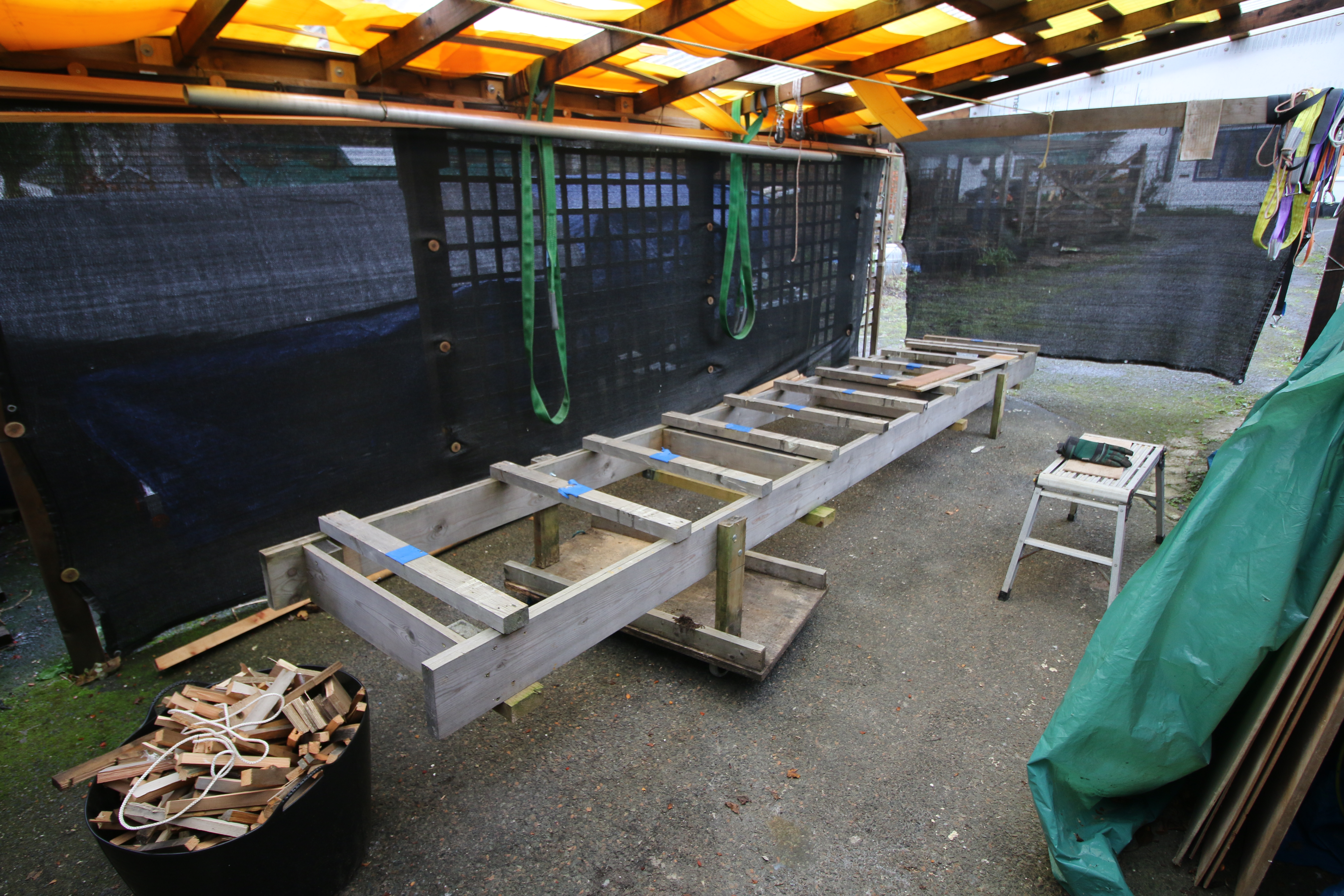 My eventual decision was to complete the boat but to do in a more relaxed way, in three distinct stages that would start with getting the boat to a simple ‘sailaway’ standard as stage one, improve on that in stage two by converting it from daysailing sloop to ‘coastal’ standard as a Yawl and then only in stage three taking it to full expedition standard. One of the main jobs in stage two will be to make a pair of lighter masts and to do that I need a lathe to make the mast end plugs and to have a lathe here I really need to build a new shed roof.
