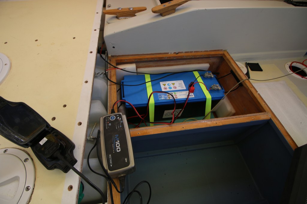 At the end of last week, as I write (Early April) I had the boat ready to start adding components towards having a fixed electrical system starting with as large a battery as I could fit – and within my ability to lift and move. This week we made a visit to the battery store in town and came away with an AGM exide battery of some 140 Ah in capacity and 45 Kg in weight. That me, post stroke, and my partner (has PMR) managed to heave it out of the car boot, carry it around to the boat and then heave it over the gunnel and into the battery compartment was quite the achievement.
