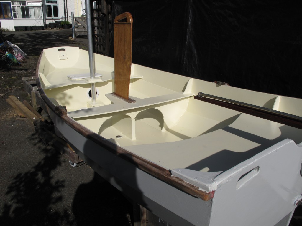 Several weeks ago, in terms of writing blog posts, we drove out into the wild hinterland of rural Devon to go see ‘a man about a dog’ – a boat in other words. A week or so later the vendor brought it over to our place, which was a huge help because at that time I didn’t own a suitable trailer and there weren’t any immediately for sale. That little dingy, the CLC Passagemaker, I decided had to be a quick,cheap and dirty project – certainly compared to the Pathfinder build, which, as with most boatbuilding projects is late and over budget. For me the Pathfinder build was a maximum project and took up all of my time and money for several years while so far the little Passagemaker has cost me what ? a small amount of cash for the hull and foils, about the same again to procure a trailer and about double that to buy some tubes for the mast and have a sail made.