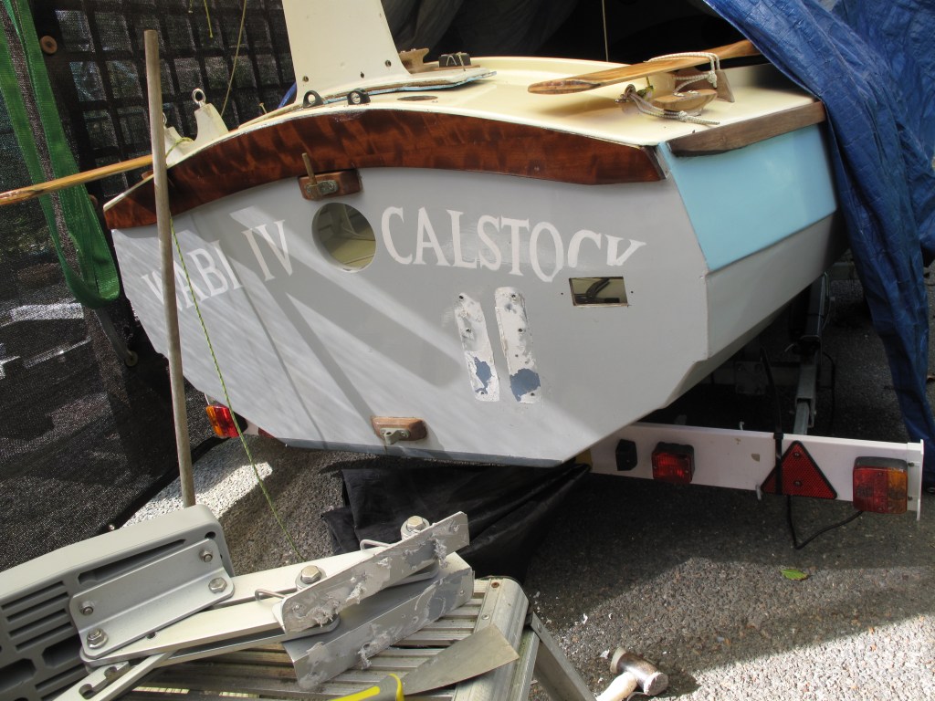 The continuation jobs on the stalled Pathfinder project have now floated to the top of the must-do list while I wait for the sail for the little CLC Passagemaker. Last week, in blog time, I moved my outboard motor mount from starboard to port because of the strange problem I had of the outboard’s tell-tale weeing on the boomkin which is the same side and dripping down into the cockpit. At the same time I made a real mess of the transom paint and just after I used the last dregs from the tin painting the passagemaker and then threw away the tin – I didn’t make a record of which precise shade of grey it was either so I had to order a new Epifanes color chart and work it out from there – I think it’s no 18 grey and i’ll be left with most of a tin so guess what color the CLC Skerry will be when I get it and repaint it. Grey or mostly grey boats are a bit of a thing around here !.