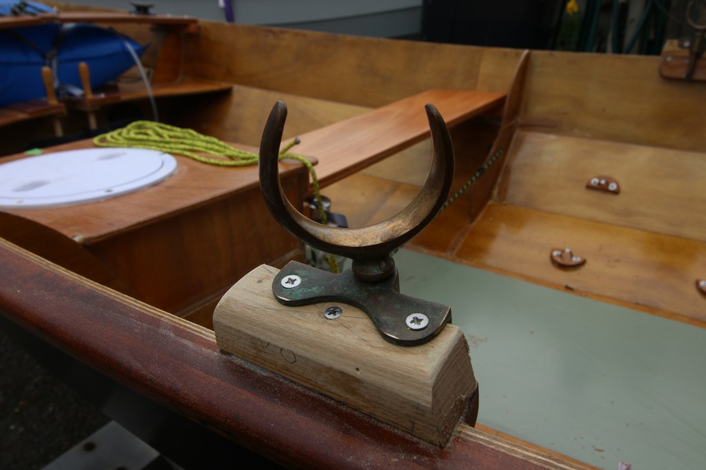 I did buy a pair of risers from Fyne boat kits but when I got them they seemed both wider than I needed and not high enough to also allow me to have a seat pad – so I made some bearers and risers out of scrap timber. The actual risers are Ash and at this stage would be improved with a bit of shaping.