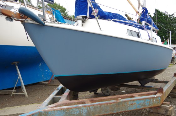 Continuing with a now-familiar theme then….. WABI”’ real time : the boat is ashore on a trolley at Calstock boatyard, … More